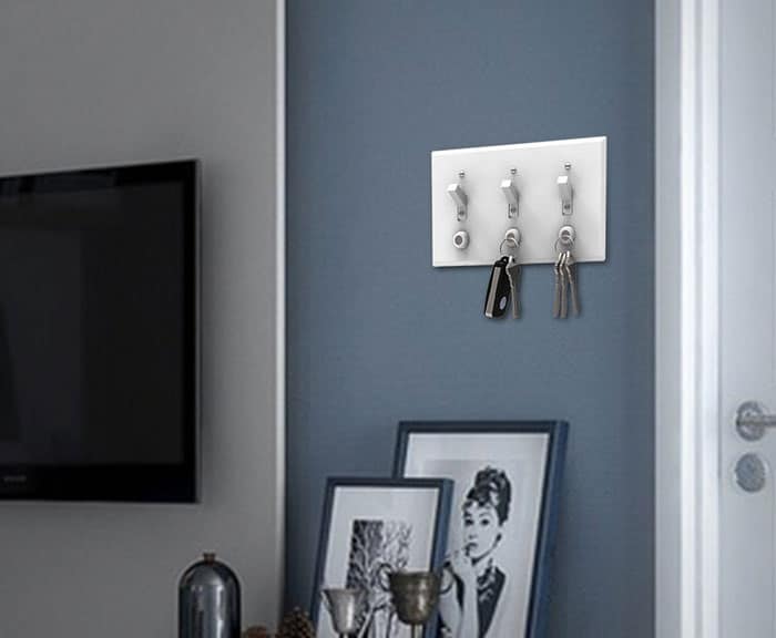 Cette solution remplaçant le besoin d’un porte clef mural ou d’un bol fourre-tout est capable de supporter jusqu’à 1,3 kg ! (autant vous dire que l’aimant n’est pas près de laisser vos clés tomber par terre).