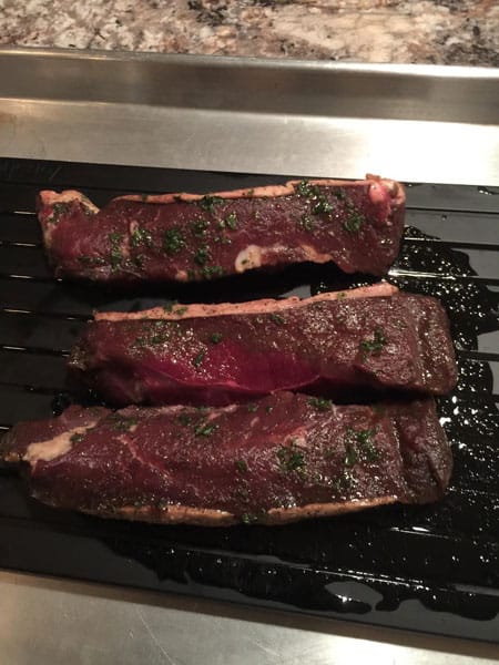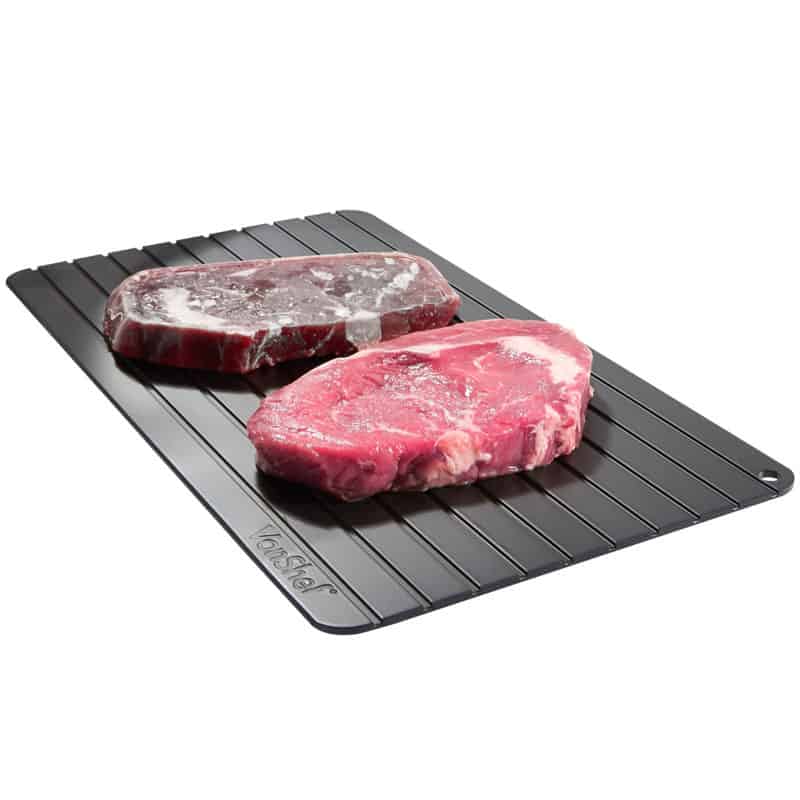 Cette planche de décongélation naturelle permet est vraiment efficace et permet de dégeler steaks, côtes de porc, etc. en toute sécurité et bien plus rapidement que si vous les laissiez à l’air libre.